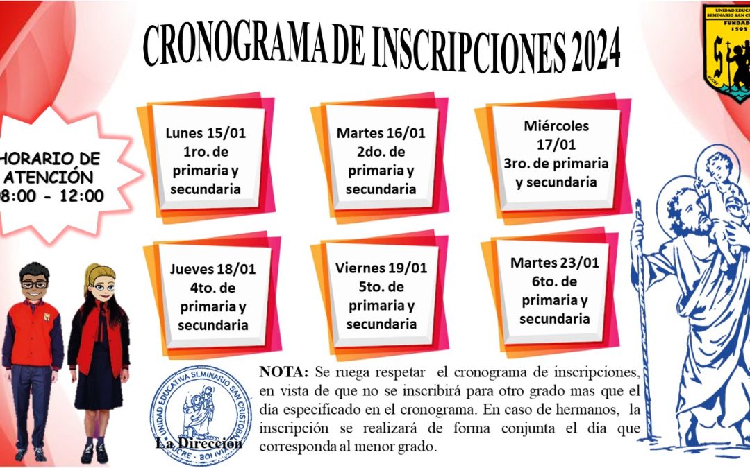 CRONOGRAMA DE INSCRIPCIONES 2024